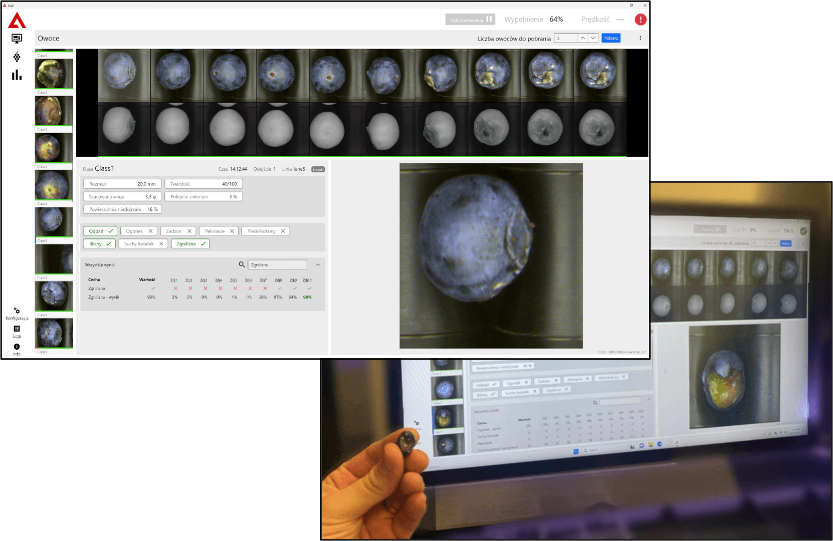 Pakiet „AI software” wykrywa defekty borówki w oparciu o sztuczną inteligencję i intuicyjny interfejs.
