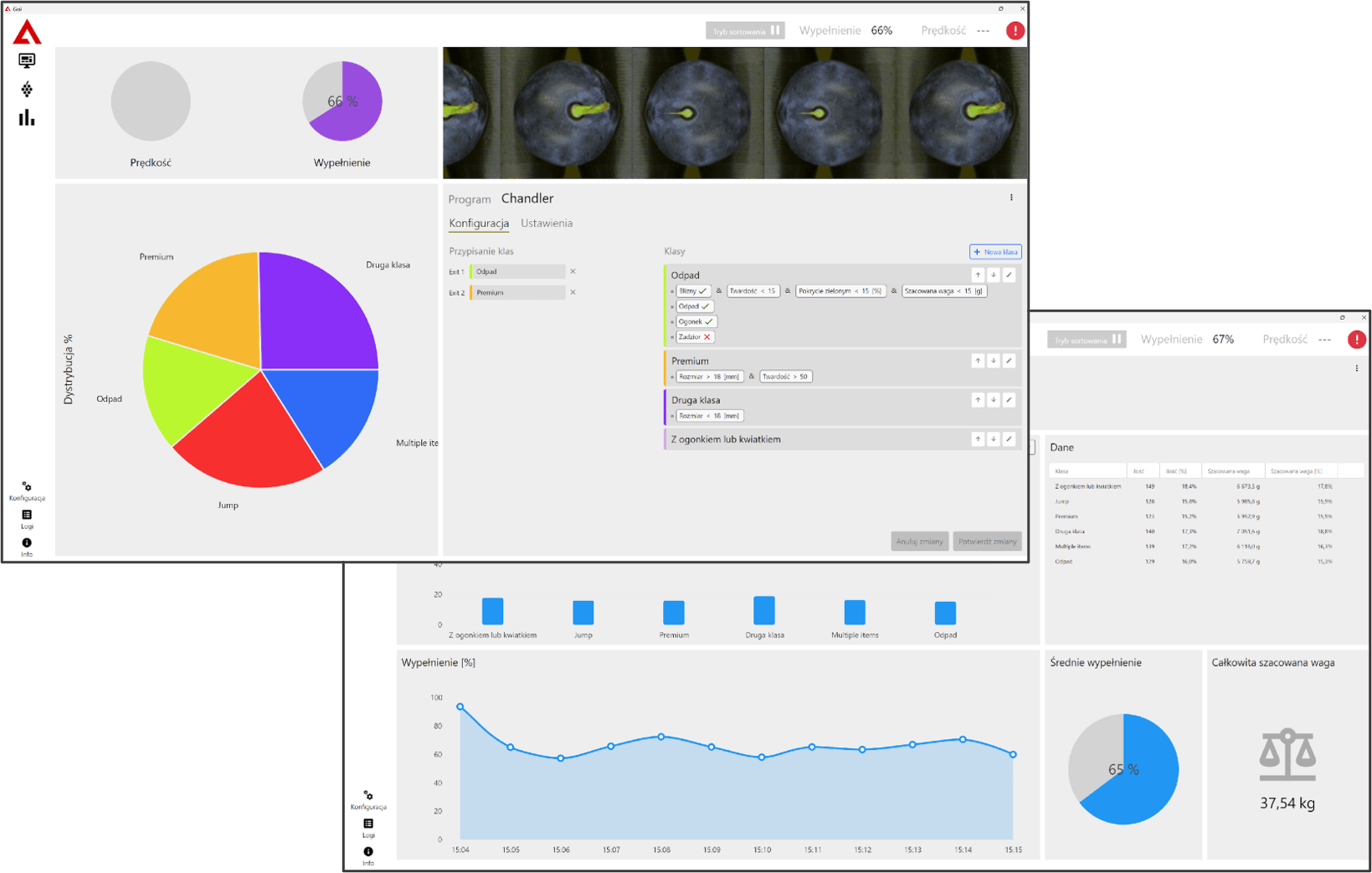 Software skupia się na zdolności detekcji borówki według „Defektów” i „Pożądanych parametrów” tak, aby jak najlepiej dostosować się do potrzeb Twojej firmy. Wszystko w intuicyjnym interfejsie.
