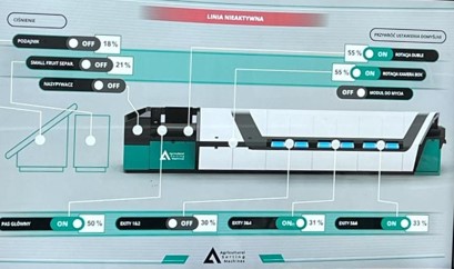 Pełna automatyzacja procesu sortowania owoców Intuicyjny interfejs użytkownika zapewnia pełną kontrolę parametrów sortowania (defektów i pożądanych cech) każdej borówki; wymaga tylko 1 operatora maszyny, co pozwala automatyzować pracę ręczną.